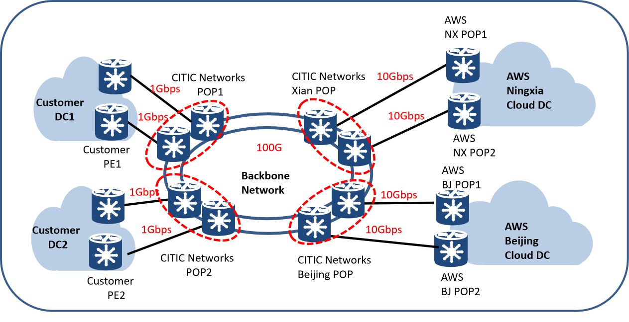 爱游戏网络骨干网络在北京、宁夏与AWS的云数据中心实现了大带宽双链路对接,支持国内客户以专线方式与AWS Direct Connect服务对接。